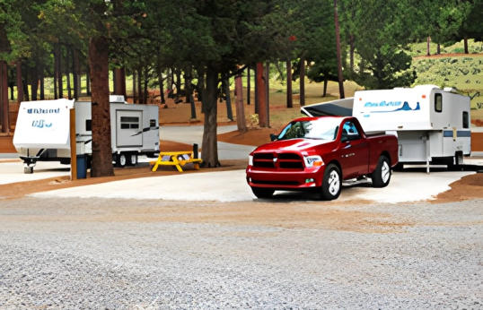 large, flat gravel-padded sites with plenty of space for slide-outs, all set within a peaceful,