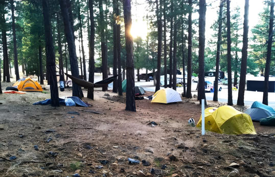 under the pines as well as a larger group tenting area with convenient nearby parking. Every